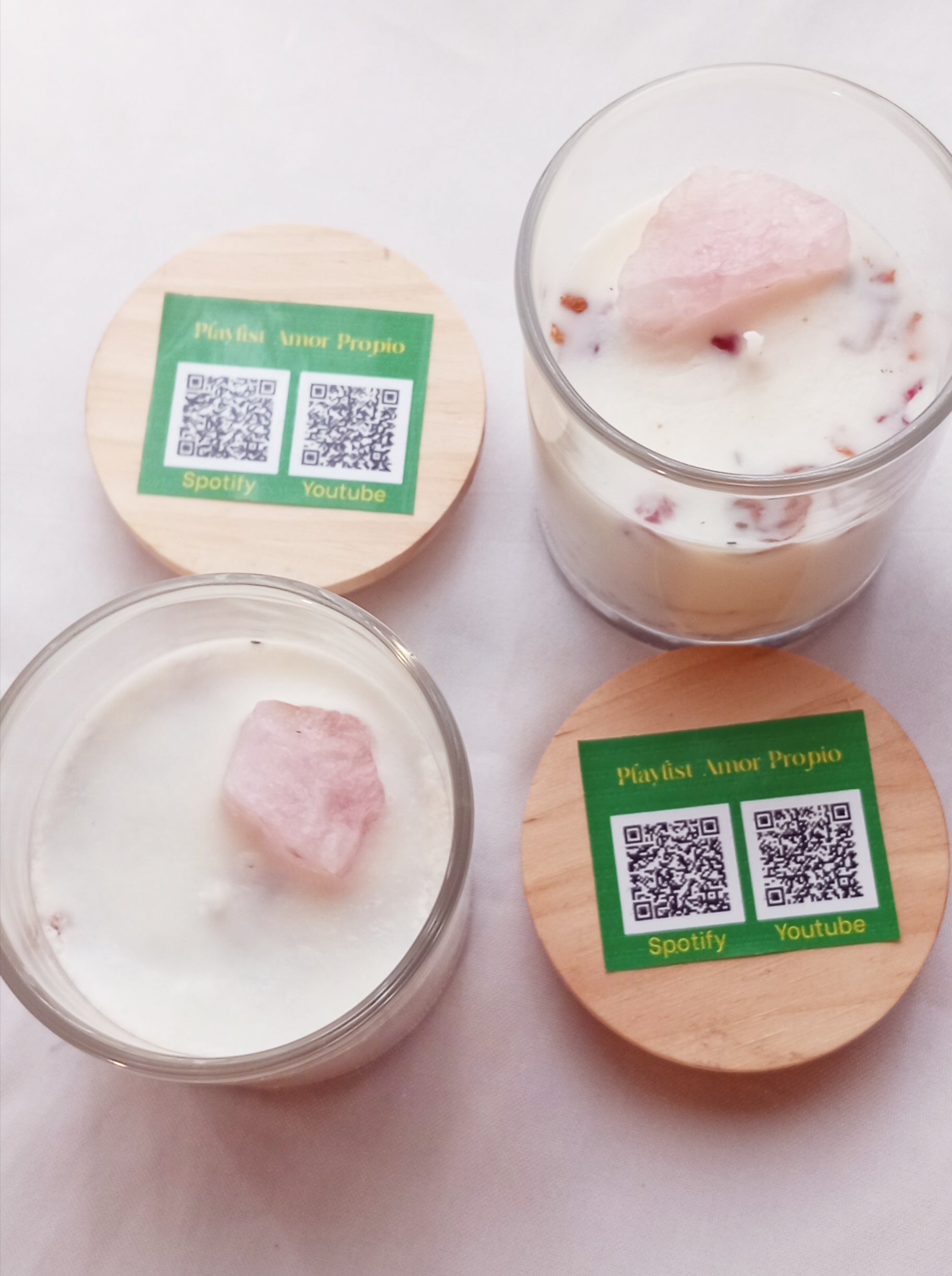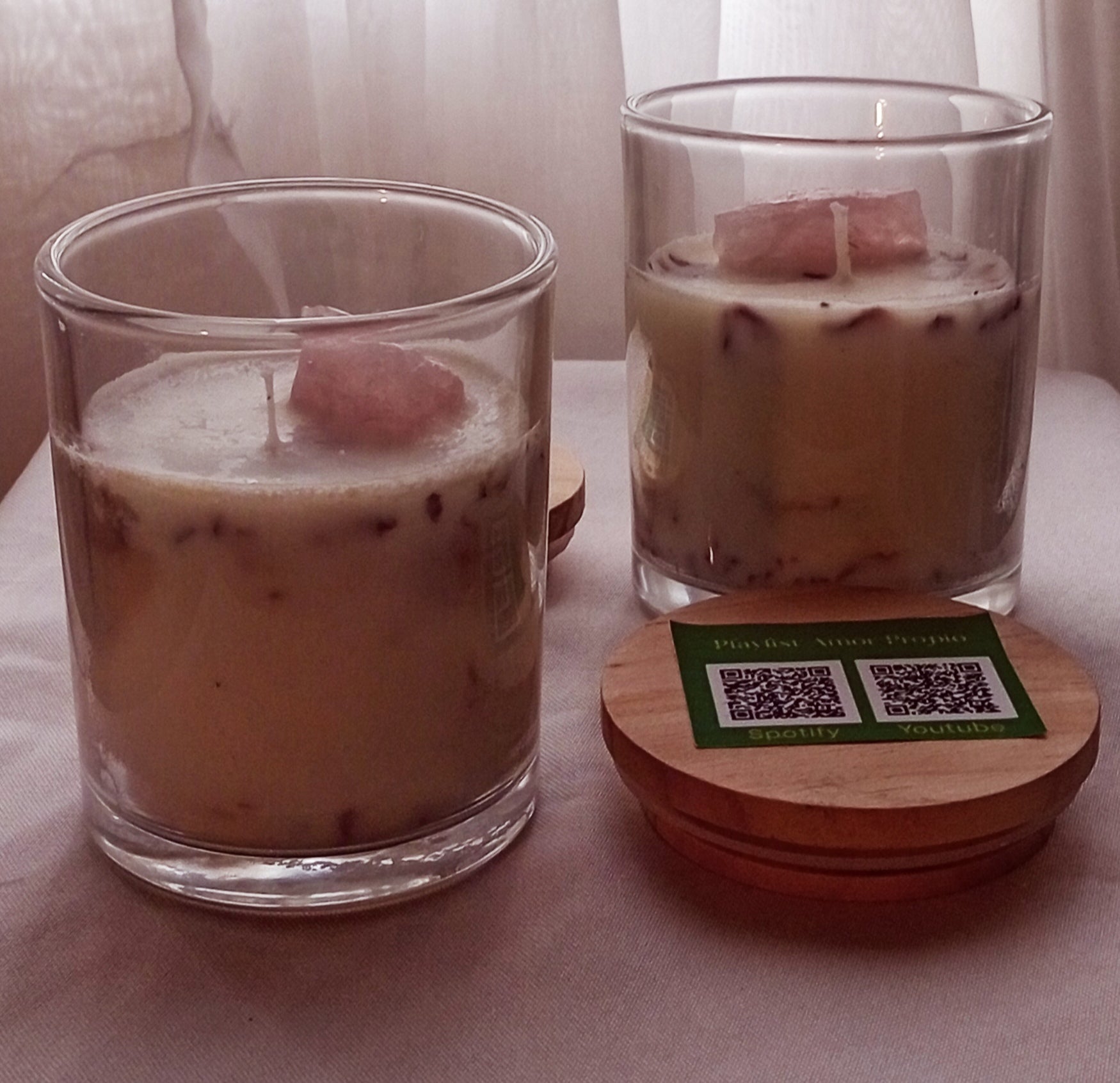 Ademas, cada vela incluye un cuarzo rosa, piedra asociada al amor propio, la compasión y la apertura del corazón.